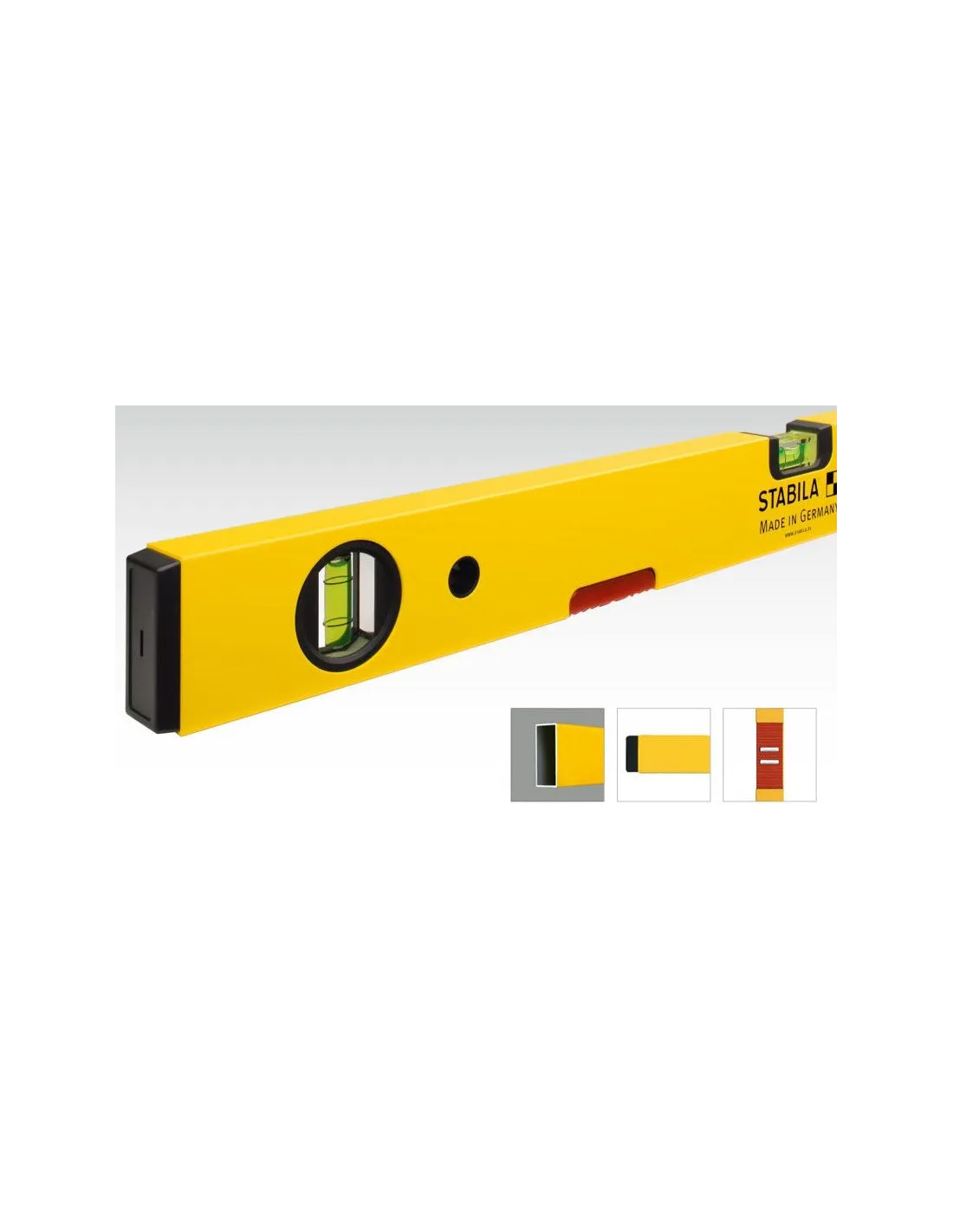 Váha vodní STABILA má jednu horizontální a jednu vertikální libelu. Má dostatečnou mechanickou odolnost.