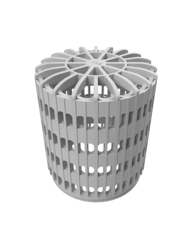 Perforovaný ochranný koš TOPWET nové generace pro střechy s kačírkem nebo s jiným přitěžujícím souvrstvím. Koš lze prodloužit odvodňovacím kroužkem TW ODK vždy o 33 mm. Provedení ze silnostěnného polyamidu PA6 UV Stabil.