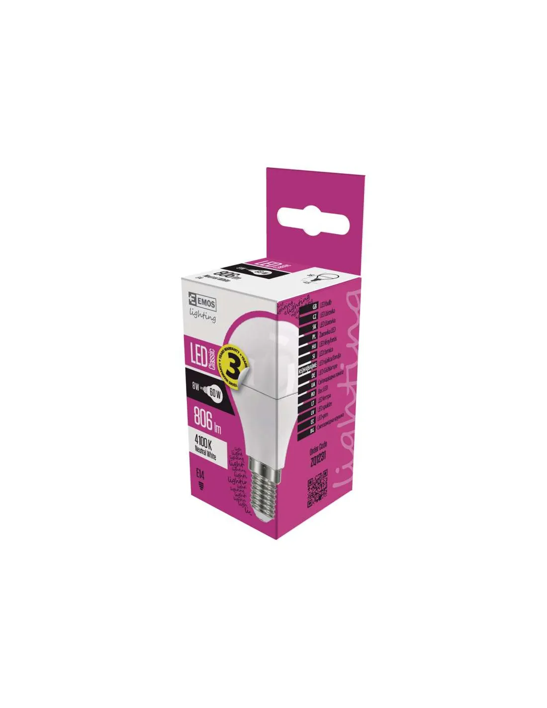 EMOS žárovku ZQ1231 našroubujete díky patici E14 téměř do všech lampiček ve vaší domácnosti. Kromě vysokého světelného toku (806 lm) vás potěší i svou nízkou spotřebou (jen 8 W) a výjimečně dlouhou životností 30 000 hodin.